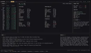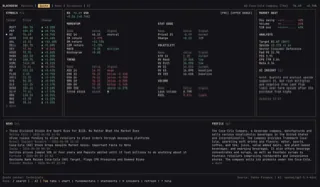 Quotes, charts, technicals, news, fundamentals, statements, insiders, screeners, and local AI connectors in one keyboard-first desk.